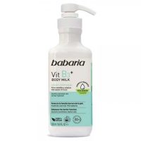 شیر بدن پمپی باباریا babaria حاوی ویتامین B3 مناسب پوست حساس حجم 500 میل وگن و ساخت کشور اسپانیا میباشد.