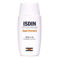 ضد آفتاب اسپات پریونت SPF50+ ایزدین بی رنگ یک ضد آفتاب اسپانیایی با محافظت بالا در برابر هر دو اشعه UVA و UVB آفتاب میباشد. از بروز لک ناشی از آفتاب و بارداری جلوگیری میکند و مناسب انواع پوست مخصوصا پوست های حساس و آتوپیک است. حاوی هیالورونیک اسید بوده و باعث افزایش رطوبت، نرمی و خاصیت ارتجاعی پوست میشود.