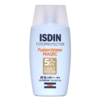 ضد آفتاب مجیک فیوژن واتر ایزدین SPF50 یک ضدآفتاب اسپانیایی سبک و زودجذب با محافظت بالا در برابر UVA/UVB بوده و برای استفاده روزانه انواع پوست مناسب است. باعث آبرسانی، مرطوب کنندگی و کنترل چربی پوست میشود و دارای عملکرد آنتی اکسیدانی است. جلوه پایانی مات دارد و فاقد روغن های معدنی است. ترکیبات اصلی ضدآفتاب Magic ایزدین: